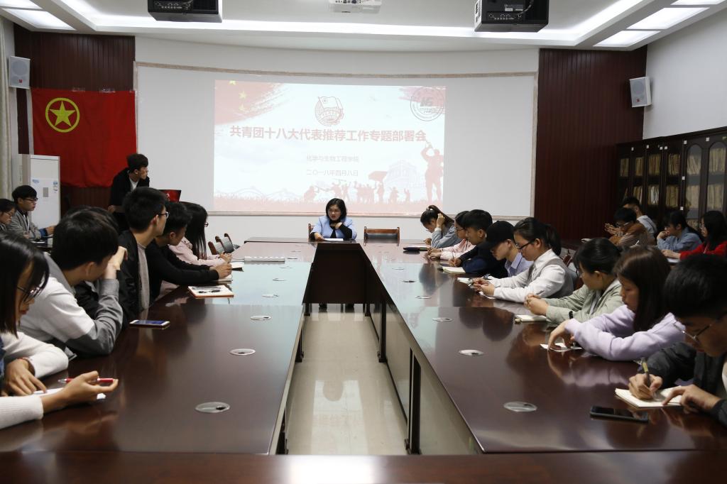 会议伊始,团委书记饶筠筠首先通过PPT对共青团十八大代表推荐工作进行了详细介绍及安排,并对接下来的工作提出以下几点要求:一是各支部要在短时间内高效且有责任心地完成共青团十八大代表推荐工作,按照要求把工作落实到位;二是做好传达工作,确保每位支部成员熟悉、熟知本项工作的具体流程及重要性,确保每位成员参与投票、参与推荐。