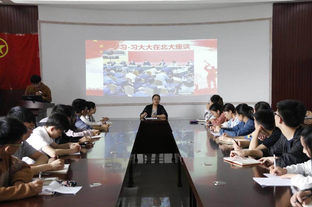 会议中,同学们认真观看习近平总书记参观北京大学的新闻视频,并聆听了习近平总书记重要讲话的内容,并纷纷表示习近平总书记的重要讲话饱含深情、催人奋进,从总书记的讲话中深刻地感受到党和国家对青年一代的殷切期望和关心关怀,令莘莘学子如沐春风、倍感鼓舞,大家在会议上积极讨论,畅谈对习近平总书记重要讲话的深刻感想。