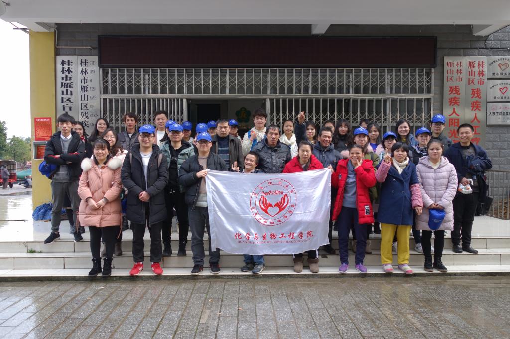组织团委.学生会、化爱为生协会和本科生党支部30余名志愿者赴桂林市雁山区残疾人阳光家园开展志愿服务活动,给园内老人与残疾人士送去了温暖。
