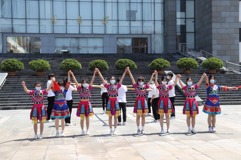少数民族学生与党员干部代表开展了“喜迎二十大、永远跟党走、奋进新征程”——“弘扬民族文化,促进民族团结”三月三主题表演活动。