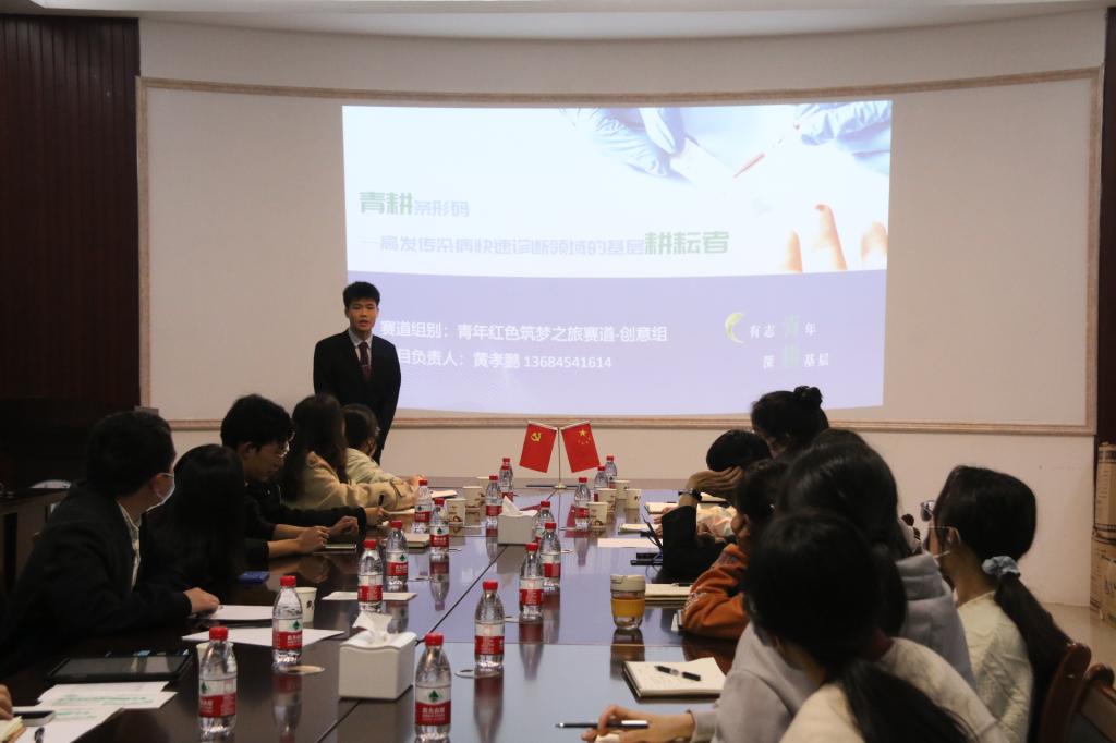 随后,各项目分别进行了项目汇报展示,校团委副书记饶蠡对项目逐一进行了把脉和点评,并围绕项目选题、创新点、可实施性及PPT展示等方面给出详细修改意见。各项目负责人针对各自项目与饶蠡老师进行了深入探讨与交流。此次项目评审打磨会帮助各个团队认识了自身的优势及不足,对各团队提升项目品质、高效备赛提供了有效支持。