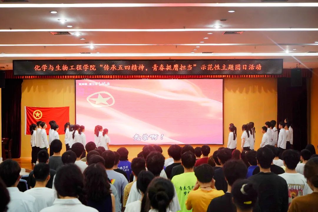 在全体人员满怀激情唱响共青团团歌后,团日活动由此拉开序幕。
