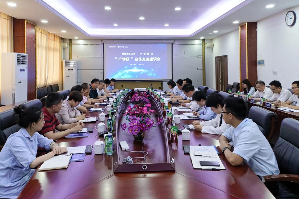 发展规划等议题进行校企交流座谈。座谈会上,中恒集团党委副书记、董事、工会主席梁建生为我校一行详细介绍了公司基本情况,双方就人才培养模式、人才引进战略等方面进行深入交流。双方共同表示应建立产学研合作和校企合作长效机制,加快实施创新驱动发展战略,推进科研成果、核心技术向市场转化,双方将本着“协同创新、优势互补、开放共享”的原则,围绕重大课题攻关、创新平台建设、高端人才培养等工作建立全面合作关系。