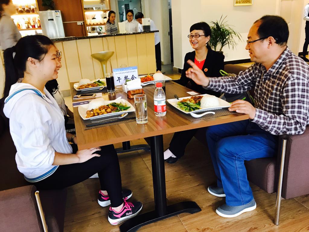 领导以及SeedHub40名学生代表。在午餐会开始前,学生代表们与企业家们一同入席,相邻而坐,共聚一堂。一道道美味的餐品被送上桌,现场的气氛也随之热烈起来。同学们抓住眼前的机会,积极与企业家交流,向同座的企业家们提出了许多关于就业与创业的问题,了解企业需求以为对人才的要求等情况。企业家们耐心地为同学们解惑,其间还跟同学们分享了很多关于就业、创业、在企业中处事的亲身经验,同学们侧身倾听,汲取经验。双方在餐桌上直面交流,谈笑风生间,拉近了企业家与学生间的距离。