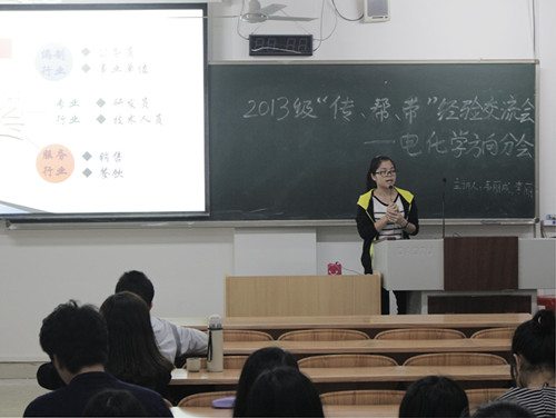 为加强学生对考研知识和经验的了解,营造积极向上的学风,为备考的同学加油鼓劲。5月9日晚上,SeedHub在06308教室举行了一个电化学方向的2013级“传、帮、带”经验交流活动。