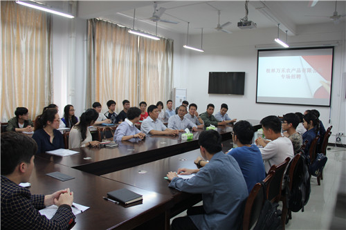 4月15日下午,桂林万禾农产品有限公司崔萌佳总经理一行6人到SeedHub招聘毕业生。SeedHub