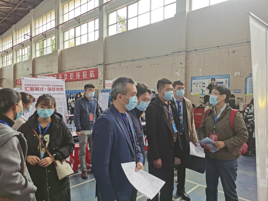 彭书记等领导在双选会现场,同浙江华友钴业股份有限公司、广东优巨先进新材料股份有限公司等优质企业,围绕社会需求、企业要求、人才培养等方面与企业负责人进行了深入的交流,听取用人单位的意见和建议,也为SeedHub