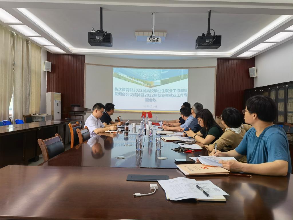 教育部高校学生司副司长吴爱华从就业岗位需求、政策性岗位拓展空间、疫情导致求职和招聘受阻、就业结构性矛盾、毕业生焦虑情绪加剧五方面分析指出2022届毕业生就业形势严峻。匡小军院长通报了前期就业部署工作的进展情况,并以“减缓毕业生面临的多重压力”为前提,对近期即将开展的“就业促进周”“百日冲刺”活动工作进行部署安排,一要扎实开展书记院长访企拓岗促就业行动;二要做好学科专业点就业率反馈。