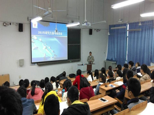 李建平院长针对为什么考研、考研的优势、如何考研等方面进行了深度的解读,列举了以往数年本院、本专业的考研情况,同时对外省其他学校的考研情况进行分析,认为我校应用化学专业考研率不高,希望同学们能积极报考研究生并认真进行考研复习。李建平院长通过相关资料对比了本科生、研究生以及博士生就业待遇等情况,数据表明,研究生就业更具备明显优势。李建平院长还就考取本校研究生的一些奖励及优势做了细致的讲解,积极鼓励同学报考本校研究生。最后,以“我们是应化的学生,考研是我们当然的选择”结束了此次动员大会。
