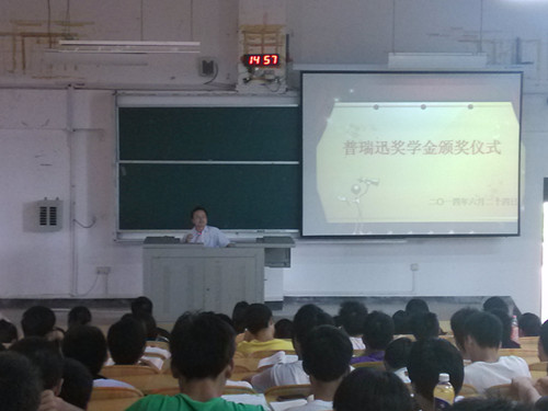 第一项议程由党委陶剑飞副书记宣读《普瑞迅奖学金条例》,第二项议程由杨建文副院长为获奖的化工10-1班兰海宽同学颁奖。随后兰海宽同学为大家介绍了普瑞迅公司的情况以及获得奖助学金的感言,并对低年级同学的提问一一作答。最后一项议程是由杨建文副院长做电化学专业发展介绍,为12,13级的学生讲解了他们的就业前景和方向。此次活动的举行,进一步巩固了优秀学生典型对同学们的示范和引导作用,充分激发了同学们学习的积极性、主动性、创造性,并使电化学方向学生了解了专业特色和明确自身发展方向。