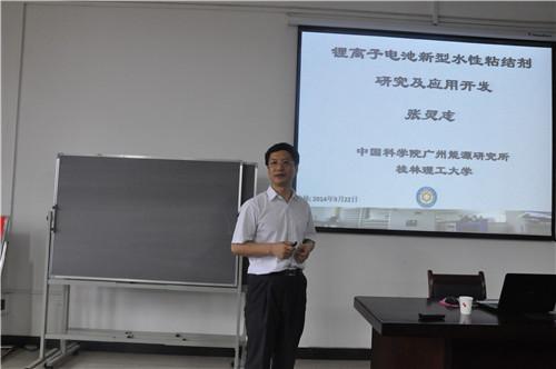 报告会上,张教授首先对自己的研究成果及项目性质做了简要的介绍。随后,张教授用深入浅出的语言向大家详细地讲解了锂电池原理及材料组成、粘结剂的用途、粘结产业现状、粘结剂体系的性能比较以及水性粘结剂的最新研究进展-Alginate等相关知识,并指出目前研究中存在的不足以及接下来的研究方向。之后,张教授还针对同学们提出的问题一一进行解答,最后,报告会在大家热烈的掌声中圆满结束。