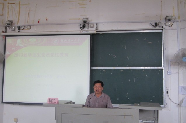 党委胡祖生书记为全体毕业生党员上了大学时代的最后一堂党课,他希望毕业生即使不在学校,也要严格按照党的思想要求自己,让自己变得更优秀。最后,他再次向毕业生提出了希望,希望他们在以后的人生道路上,能够披荆斩棘,追寻属于自己的中国梦!