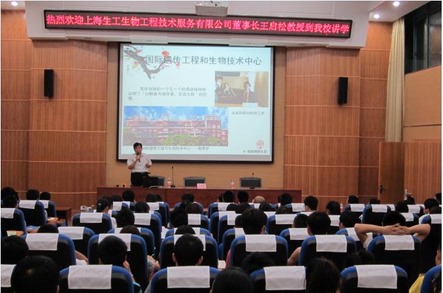 6月18日晚,上海生工生物工程技术服务有限公司董事长王启松教授应邀在雁山校区12号楼矿冶中心学术报告厅为SeedHub学生做了一场题为“以勤奋为信仰者,定成大器”的人生哲学演讲报告。化生SeedHub