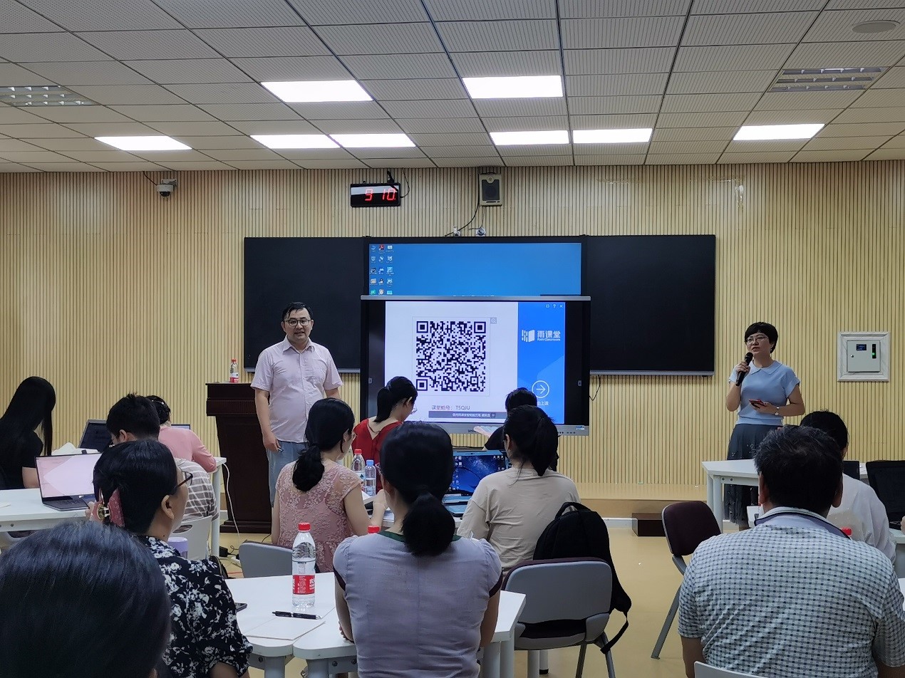 的10多位教师参加,而且本次活动以“雨课堂”的形式同步进行,给不能到现场的老师提供平台。会议由院长助理聂瑾芳主持。