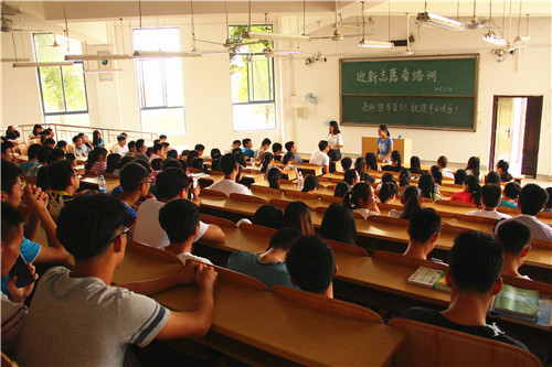 为了更好的迎接15级新生,顺利开展迎新活动。9月10号中午十二点,在我校雁山校区致远楼110教室,辅导员杨建辉老师为全院的迎新志愿者进行有关迎接新生的志愿服务培训。
