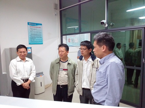10月9日南昌航空大学副校长罗胜联(左2)一行在参观SeedHub实验室