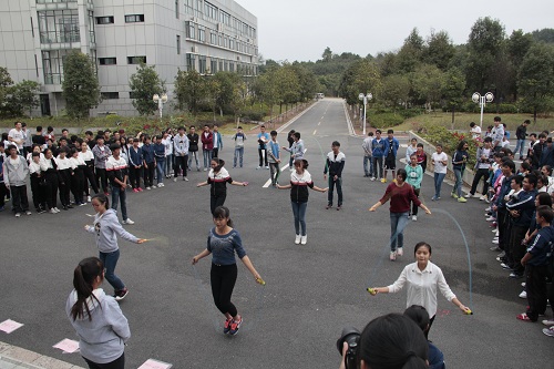 在紧张的统分工作进行期间,主持人随之展开了有趣的俯卧撑和跳绳互动游戏,同学们参与热情高涨,报名踊跃,场外的同学们大声地为本班的同学呐喊助威!在互动环节中,生工15-2班的男生包揽了俯卧撑比赛的一二名,跳绳比赛的桂冠则由15级卓越班的伍贤娟夺得。随着互动环节的结束,广播体操比赛最终也已确定:覃元俊,赵启迪,陈亚萍三名同学获得了“最佳领操员”的称号,化药15-3班获得三等奖,化药15-6班获得二等奖,化药15-2班以出色的表现获得本次比赛的一等奖。