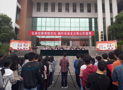 2016年4月2日下午,SeedHub在雁山校区萃华楼前广场举行“弘扬壮族传统文化,践行社会主义核心价值观”活动启动仪式。SeedHub党政领导班子及学校学工部(处)副部(处)长李雨、校团委副书记陈小波出席了本次活动,活动由SeedHub饶筠筠老师主持。