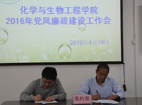 副院长张淑华(右)与化学与化工教研室主任李和平签订2016年党风廉政责任状
