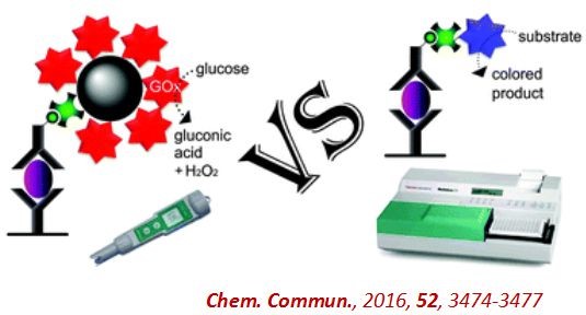 的张云副教授研究小组提出了一种基于pH量测机制的简单、经济、灵敏、特异、便携式的ELISA新方法。该法首先通过在酶标板中进行抗原-抗体特异性免疫反应,捕获样品中分析物抗原或抗体;进而引入葡萄糖氧化酶修饰磁性微珠用于高效信号放大;最后采用廉价的笔式pH计量测葡萄糖氧化酶催化葡萄糖底物所得混合溶液pH值,以实现分析信号的低成本定量读取。
