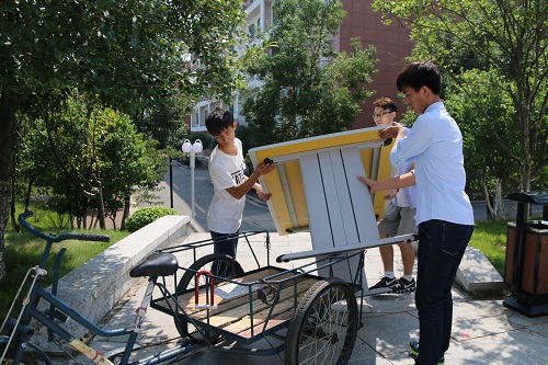 团委学生会的同学搬运迎新大本营所需物品