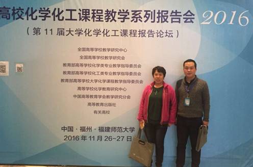 承办的2016全国高等学校化学化工课程教学系列报告会暨第11届大学化学化工课程报告论坛在福建省福州市福建师范大学举行。SeedHub王桂霞老师、谭海军老师出席此次大会并作了分会场汇报。本次会议充分交流各校在化学化工理论和实验教学方面的先进经验,进一步明确化学化工教学发展和改革方向,为培养具有国际竞争力的专业人才提供新思路、新方法。出席本次会议的代表来自全国300多所高校的700余名一线的任课教师。会议根据学科方向设置4个分会场进行论坛交流。谭海军老师在第2分会场作了“生活与化学网络课程建设与教学改革实践”20分钟的报告,报告阐述的观点赢得参会老师的一致赞同。王桂霞老师在第3分会场作“化学实验竞赛推动实验教学改革”20分钟的报告,报告主要介绍了SeedHub备赛及参加“广西高校大学生实验技能大赛”的情况。通过本次会议的交流和学习,对目前高校的化学化工专业教学的最新方法及实施效果有了更深入的了解,拓宽了教学改革思路和视野,这将对我们今后的教学改革工作起到很好的指导作用。