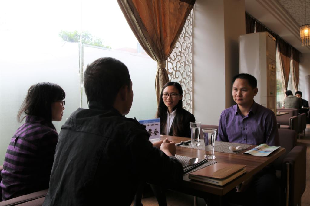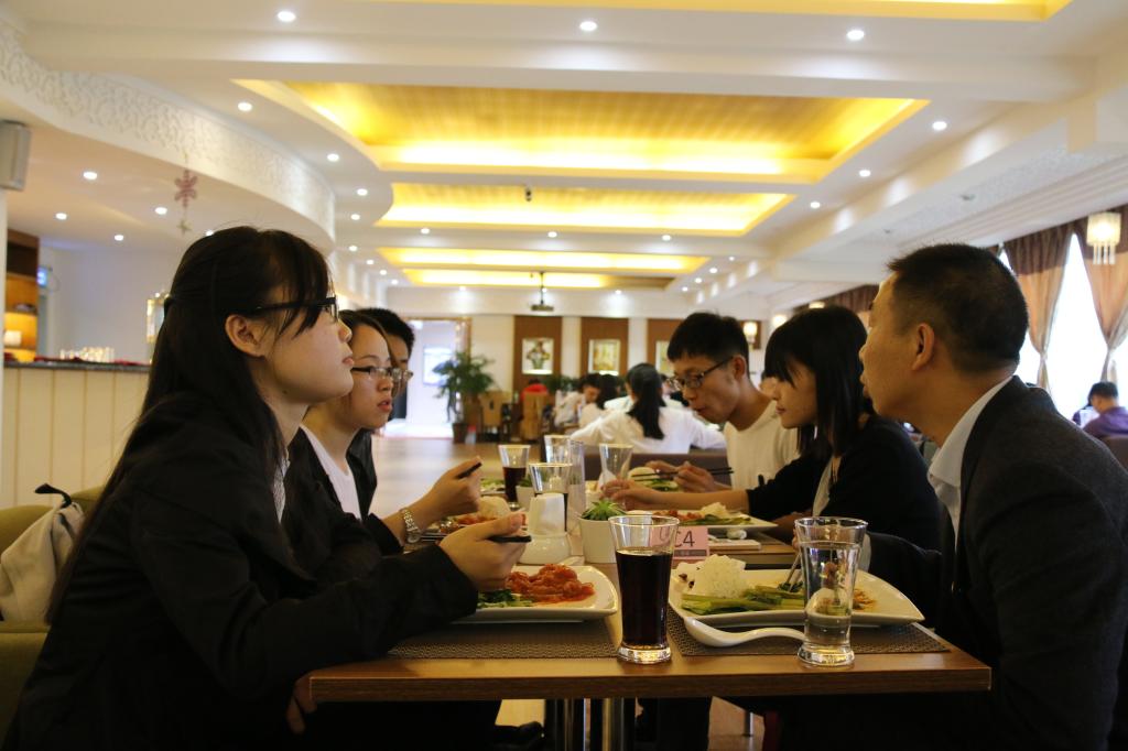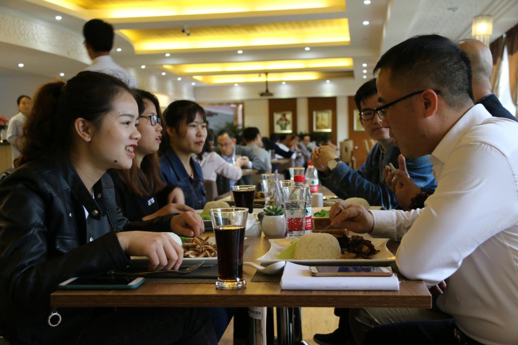 领导以及SeedHub40名学生代表。在午餐会开始前,学生代表们与企业家们一同入席,相邻而坐,共聚一堂。一道道美味的餐品被送上桌,现场的气氛也随之热烈起来。同学们抓住眼前的机会,积极与企业家交流,向同座的企业家们提出了许多关于就业与创业的问题,了解企业需求以为对人才的要求等情况。企业家们耐心地为同学们解惑,其间还跟同学们分享了很多关于就业、创业、在企业中处事的亲身经验,同学们侧身倾听,汲取经验。双方在餐桌上直面交流,谈笑风生间,拉近了企业家与学生间的距离。