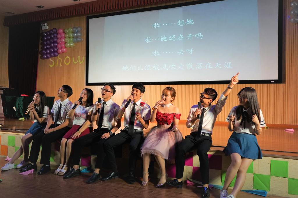 最后,黄炽文等毕业生带来《歌曲串烧》点燃了全场高潮,首首歌曲重现过往岁月,句句歌词触动心灵。学工办老师带来的朗诵《生命是一树花开》点亮心灵之灯。13级辅导员陈文甫老师深情告别,“我觉得三年半里,陪伴是最长的告白,我希望同学们毕业后能够坚守自己的梦想,我爱你们”,在这感动时分,老师们献上一首《祝你一路顺风》,表达了他们对毕业生的美好祝愿。晚会在同学们的深情告白下完美落幕。