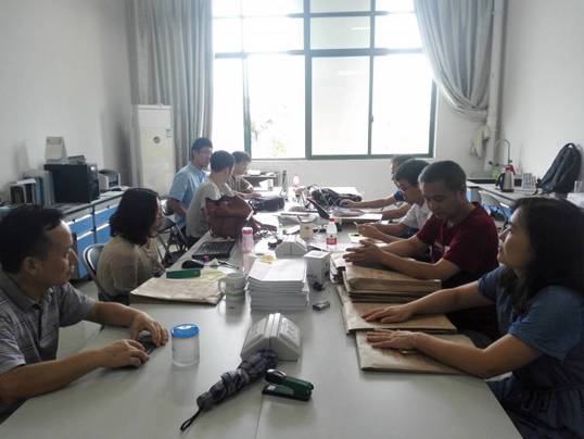 会上,温玉清老师首先通报了本届毕业设计(论文)整体情况。随后,全体与会人员分四组传阅了全部本科生毕业论文,筛选出13份较优秀的论文,在其中投票选拔出了陆凯慧和谢剑同学的论文推荐参加校百篇优秀论文评选,推荐李文武和黄慧同学参加广西高校大学生化学化工类论文及设计竞赛。此外,会议还进行了优秀指导教师的投票选举,最终推荐海杰峰老师参加2017届毕业设计(论文)优秀指导教师评选。