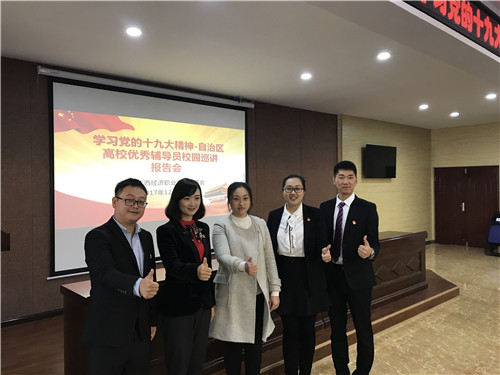 为推进全区高校深入学习宣传贯彻党的十九大精神,根据教育部和自治区高校工委有关部署要求,广西区教育厅组织开展了广西高校“学习贯彻党的十九大精神——优秀辅导员‘校园巡讲’和‘网络巡礼’活动”,自治区教育厅从全区高校获得历届全国高校辅导员年度人物入围奖及全区高校辅导员职业能力大赛一、二、三等奖的优秀辅导员中遴选29名优秀辅导员,我校共四位辅导员入选本次区级宣讲团,其中,SeedHub团委书记饶筠筠、辅导员何宗辉入选宣讲团名单,并受聘为广西高校“学习贯彻党的十九大精神——优秀辅导员‘校园巡讲’和‘网络巡礼’活动”巡讲专家。”