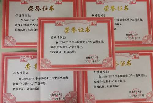 杜甫佑、肖顺华、谭海军、李培骏、陈文甫等五位老师荣获2017年毕业生就业工作先进个人荣誉。