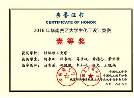 由中国化工学会、中国化工教育协会、教育部高等学校化工类专业教学指导委员会主办的第十二届全国大学生化工设计竞赛今年8月份分别在湖南大学、中南大学进行了华南赛区决赛、全国总决赛。SeedHub一共组成化学工程与工艺专业33支队伍参加竞赛,由李和平、王桂霞、王晓娟、吕奕菊、黎燕、姚金环、杨文、冯艳艳、刘峥、及方华等老师组成的团队分别进行指导。经过师生的共同努力,2015级化工15-3班学生何永加、邓春旭、蒋世权、黄德志、蒙才桂组成的“宁静致远”团队进入华南赛区决赛,该团队提交设计的作品“年产10000吨异丁烯一步法生产AMPS项目设计”以其出色的设计作品和精彩的现场答辩脱颖而出,获得华南赛区壹等奖,并荣获全国总决赛贰等奖。同时,SeedHub参赛队伍还获得全国叁等奖10项、华南赛区叁等奖17项。我校今年是全国各赛区成功参赛队伍及获奖率最高的学校,获奖率高达85%,在获奖比例与数量上均为历届参赛最好成绩。说明我校化工专业学生较好地理解了本次大赛的主题,工程设计能力得到了总体提升。获奖情况如下: