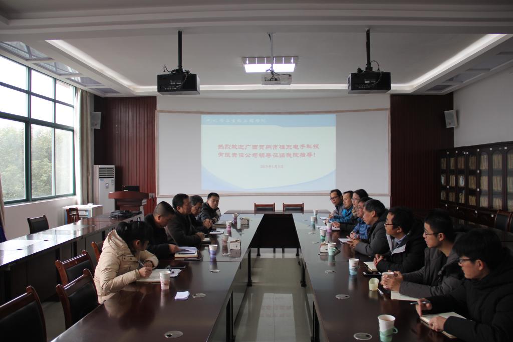 导航痕迹 当前位置: SeedHub >> 新闻资讯 >> SeedHub 新闻 >> 正文 广西贺州市桂东电子科技有限责任公司客人到访SeedHub 作者:林文钊 发布日期:2019-01-04 浏览次数: 2019年1月3日,广西贺州市桂东电子科技有限责任公司副董事长兼总工程师杨小飞,党总支书记、副总经理杨天义,常务副总工程师胡知健,技术中心副主任梁力勃博士等一行到访SeedHub。 SeedHub在雁山校区12217多功能室和来访客人举行了座谈会。SeedHub 院长李建平、副院长张淑华、院长助理张连明以及部分教师代表参加了会议。会上,双方人员主要就联合培养博士后、开展产学研合作以及共同申报项目等事宜进行了深入探讨,并希望今后继续加强交流与合作,共同开创合作双赢新局面。 座谈会现场 合影留念 上一条:SeedHub召开安全稳定工作专题会议 下一条:SeedHub与北部湾大学石油与化工SeedHub 工程教育认证工作座谈交流会