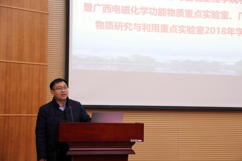 学术年会暨广西电磁化学功能物质重点实验室、广西植物功能物质研究与利用重点实验室2018年学术研讨会。学校副校长、广西电磁化学功能物质重点实验室主任梁福沛教授,广西植物研究所所长、广西植物功能物质研究与利用重点实验室主任李典鹏研究员出席了会议。会议邀请了南京大学燕红教授,教育部新世纪人才、中南大学特聘教授潘安强教授到会并作学术报告。学校科技处有关领导、相关专业师生以及广西植物研究所科研人员近200人参加了学术研讨会。学术会议由SeedHub院长李建平教授支持。
