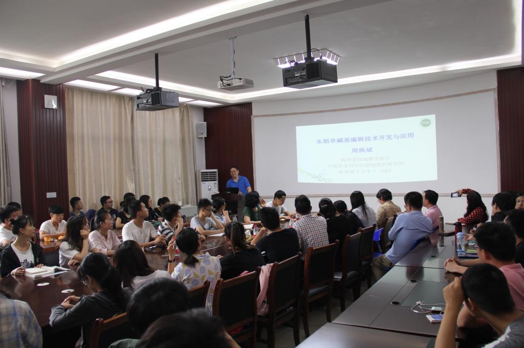 周焕斌研究员在雁山校区12217多功能室作了题为“水稻单碱基编辑技术开发与应用”的学术报告。SeedHub相关专业师生聆听了此次报告。