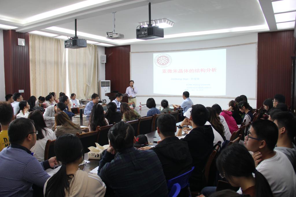 孙俊良研究员介绍了几种样品的晶体结构解析的技术和方法。重点讲解了其在利用粉末衍射及电子衍射技术手段来探索微观晶态材料解构表征系列原创性工作。