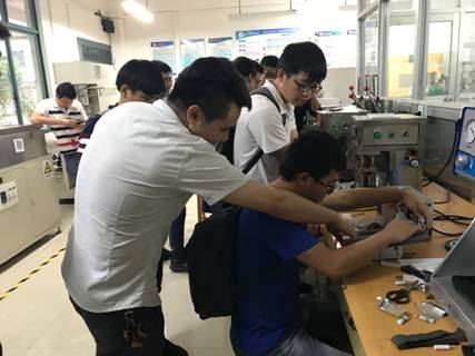 2019年11月2日,受能源化学工程专业教研室的邀请,广东佛山实达科技有限公司潘金前总经理带领陈设军和胡洪海工程师及技术骨干一行8人,来SeedHub进行锂离子电池理论指导及中试生产线的现场操作培训。潘金前总经理结合当前的新能源发展现状,为同学们做了“锂离子电池市场前景调查和本科生就业环境分析”的报告,陈设军工程师介绍了锂离子电池制作的工艺流程、关键设备使用及注意事项。能源化学工程专业教研室温玉清、杨建文、肖顺华、陈权启4位老师和能源化学工程专业部分本科生与研究生近60余人参与了本次活动。活动中,同学们积极互动,对能源化学工程专业的未来发展前景充满期待。在培训活动结束后,双方就能源化学工程专业人才培养方案修订交换了意见,一致认为“重基础、重实践”有利于学生就业和未来的发展。通过本次活动,为能源化学工程专业人才培养方案的修订和锂离子中试生产线的良好运行奠定了基础,加深了校企合作的力度,取得了预期的效果。