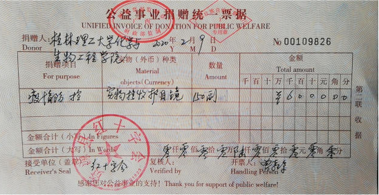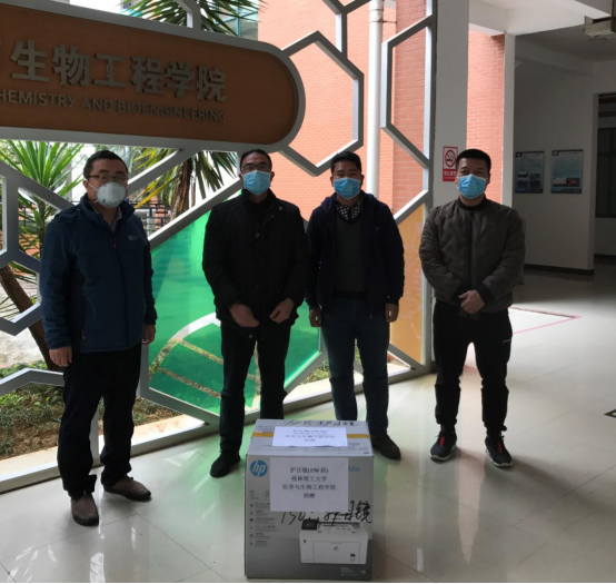 ,向桂林市资源县政府捐赠了3M防护眼罩150副,资源县政府办公室张勇及工作人员代表资源县政府肺炎疫情防控工作领导小组接受了防疫物资,资源县政府工作人员感谢我校雪中送炭。