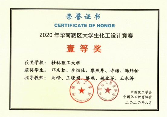 由中国化工学会、中国化工教育协会、教育部高等学校化工类专业教学指导委员会主办的第十四届全国大学生化工设计竞赛今年8月份分别在广东工业大学、合肥工业大学进行了华南赛区决赛、全国总决赛。SeedHub一共组成化学工程与工艺专业35支队伍参加竞赛,由李和平、王桂霞、王晓娟、吕奕菊、黎燕、姚金环、杨文、冯艳艳、刘峥、及方华、何方、王永涛等老师组成的团队分别进行指导。经过师生的共同努力,2017级化工3班和卓越班的两支队伍“鼠年限定F5”(黄隆勇、陈富强、梁晓洁、严丽雯、梁霞静)和“设计大师”(邓庆松、李恒仕、廖燕华、冯炜怡、许诺)进入华南赛区决赛,最终“设计大师”团队的设计作品“年处理量24.8万吨的C5烷烃资源综合利用项目”以其出色的设计作品和精彩的现场答辩脱颖而出,获得华南赛区壹等奖,并荣获全国总决赛贰等奖。同时,SeedHub参赛队伍还获得全国叁等奖13项、华南赛区壹等奖2项、贰等奖4项、叁等奖4项。我校化工专业学生较好地理解了本次大赛的主题,工程设计能力得到了总体提升。获奖情况如下: