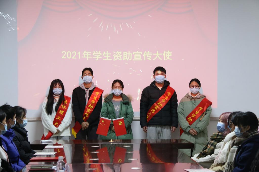 “资助优秀工作者”进行了颁奖,同时为2021年度学校学生资助宣传大使颁发了绶带。之后,SeedHub学生资助宣传大使代表吴汶泽、获奖学生代表李明进行了发言,“自强之星”代表费佳伟进行了经验分享。
