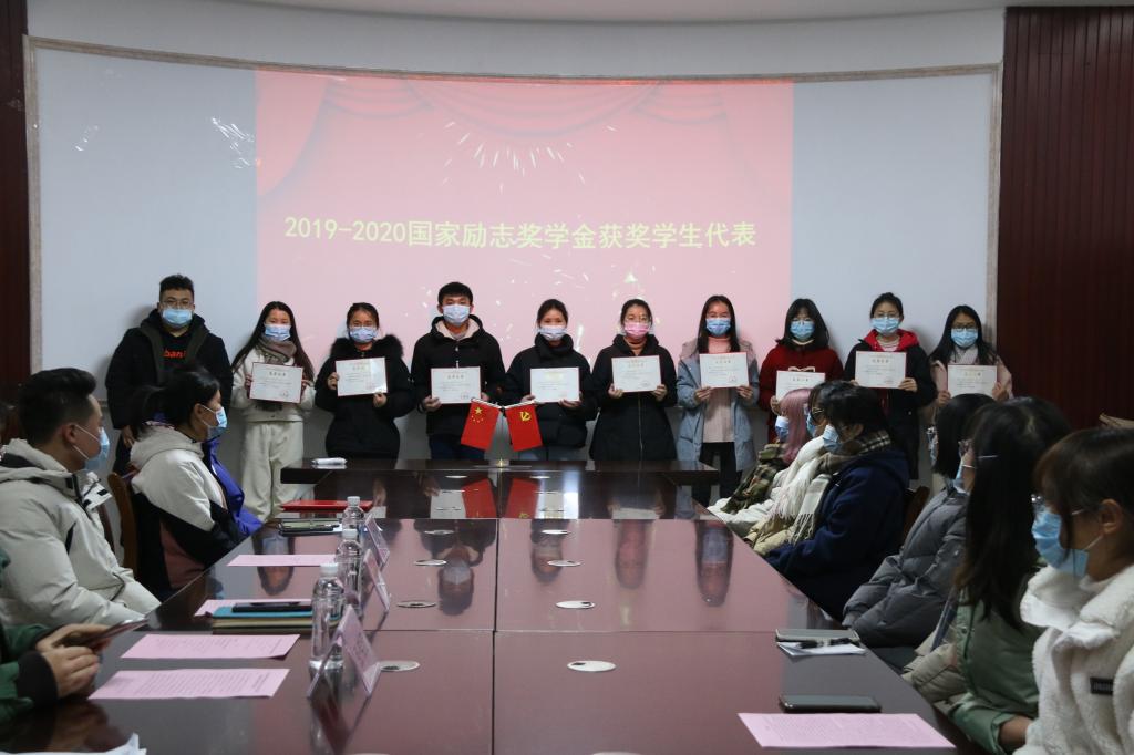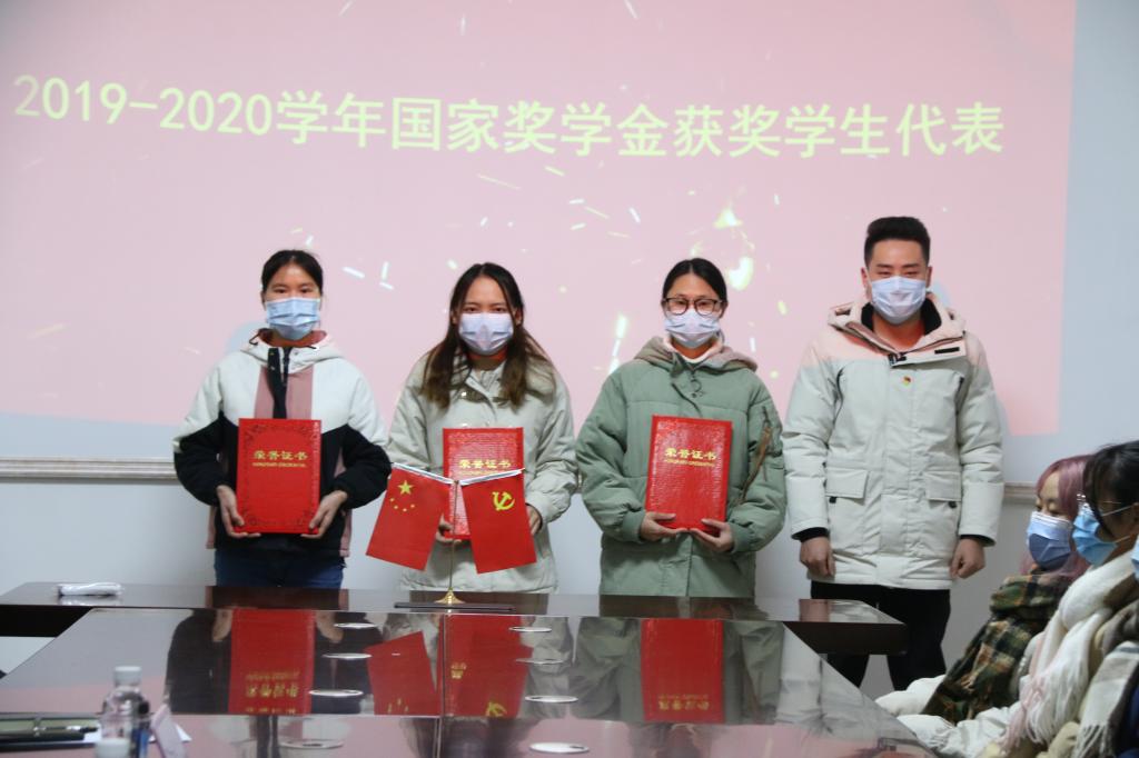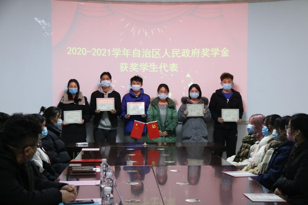随后,张伟颀老师宣读了表彰决定,与会老师向2019-2020学年度国家奖学金、国家励志奖学金、2020-2021学年度自治区人民政府奖学金、2019-2020学年度SeedHub