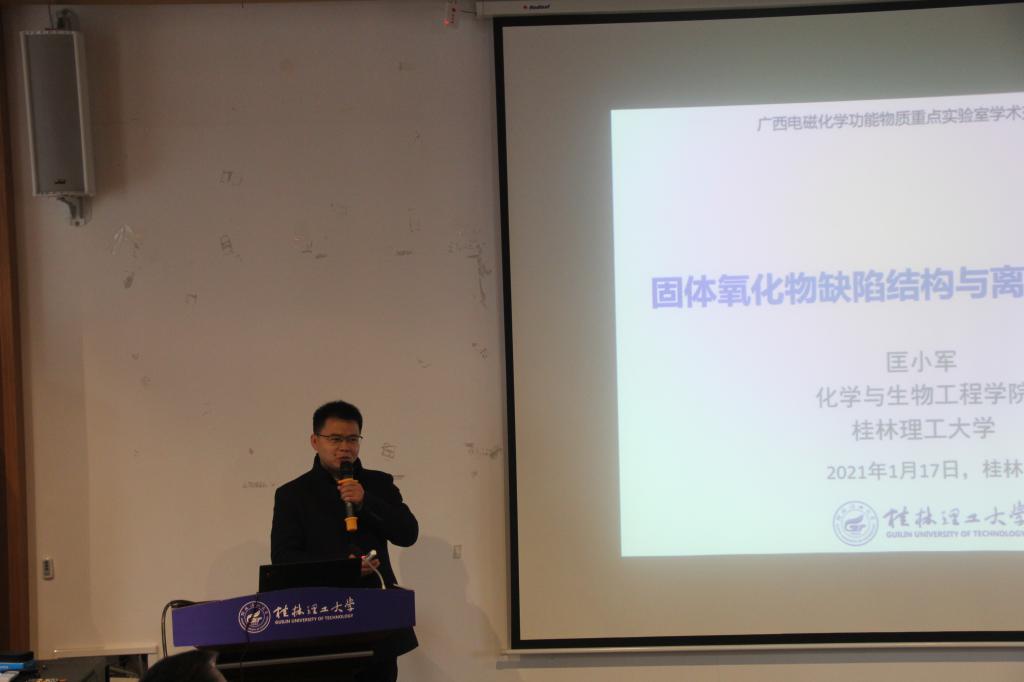 2021年1月17日,SeedHub举办的广西电磁化学功能物质重点实验室学术交流报告会在屏风校区科创中心学术报告厅顺利召开。学校副校长、广西电磁化学功能物质重点实验室主任梁福沛教授出席并在开幕式上致辞,SeedHub