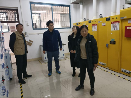 本次安全检查重点对广西电磁化学功能物质重点实验室的大型仪器管理、危险化学品存放等进行了检查,并现场指导学生使用实验药品登记、实验室保持通风、用水用电安全注意事项等。