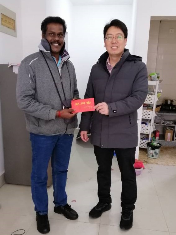 看望慰问部分留校过年的教师代表:雷呈宏教授、Chandru博士、邱福荣博士等。