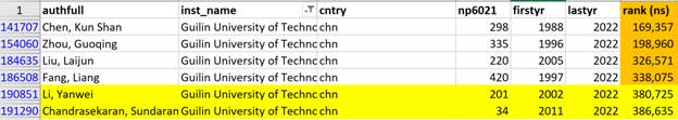 入选2022全球2%顶尖科学家“生涯影响力”榜单名单