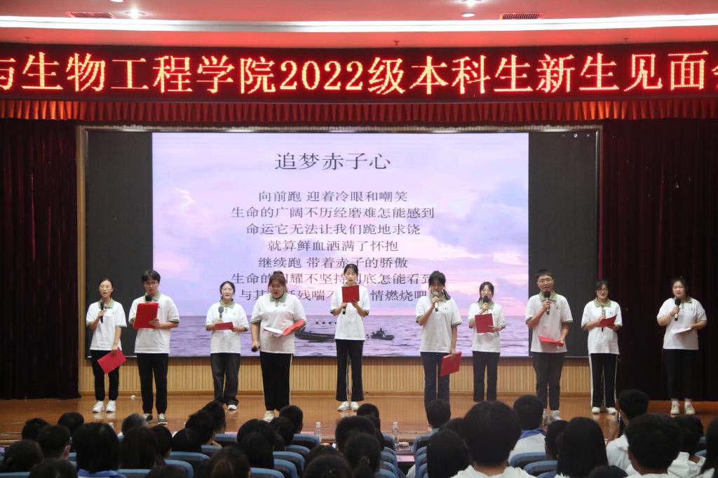 见面会伊始,彭代江书记对2022级新生的到来表示热烈的欢迎,并对大家寄予了厚望:他希望各位同学在大学里能够不负时光、无悔理想。新生代表叶子剑在发言中表达了自己对大学生活的向往之情以及对以后人生的规划。随后,各班同学带来风采展示,年轻的面孔上洋溢着笑脸和对未来美好的憧憬,现场呈现出活跃的气氛。老生代表史晓雨以亲身经历与新生们分享大学学习和生活的经验。接着,班主任代表唐群老师提醒同学们珍惜宝贵时光,全身心投入学习,树立远大理想,培养和提升自己的品德修养。最后,匡小军院长就SeedHub
