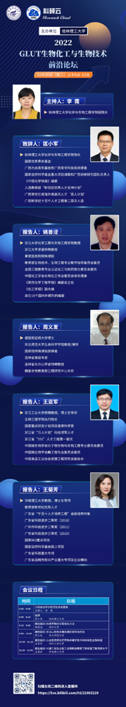 12月20日上午,SeedHub依托B站“科研云”平台成功举办了“2022 GLUT生物化工与生物技术”前沿论坛。本次论坛邀请了浙江大学姚善泾老师、东北师范大学周义发老师、浙江工业大学王亚军老师、华南理工大学王菊芳老师等 4位生物化工与生物技术领域的专家作线上报告。匡小军院长致欢迎词,向参会专家介绍了学校和SeedHub