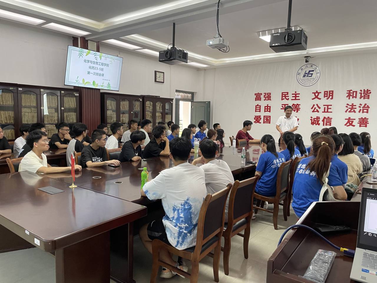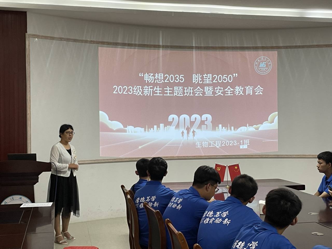 扬帆起航;2023级生物工程2班班主任李海云老师指出大学就像发酵罐,最后的成品取决于发酵过程,大学生活很美好也很短暂,希望新同学都能怀揣梦想,珍惜时光,一如既往地努力拼搏;2023级应用化学1班班主任朱文远老师指出大学是新的起点,同学们要融入新的环境,塑造更好的自己;2023级应用化学1班班主任阮贵华老师鼓励同学们在面对未来时保持积极向上的心态,努力学习,不畏艰难。