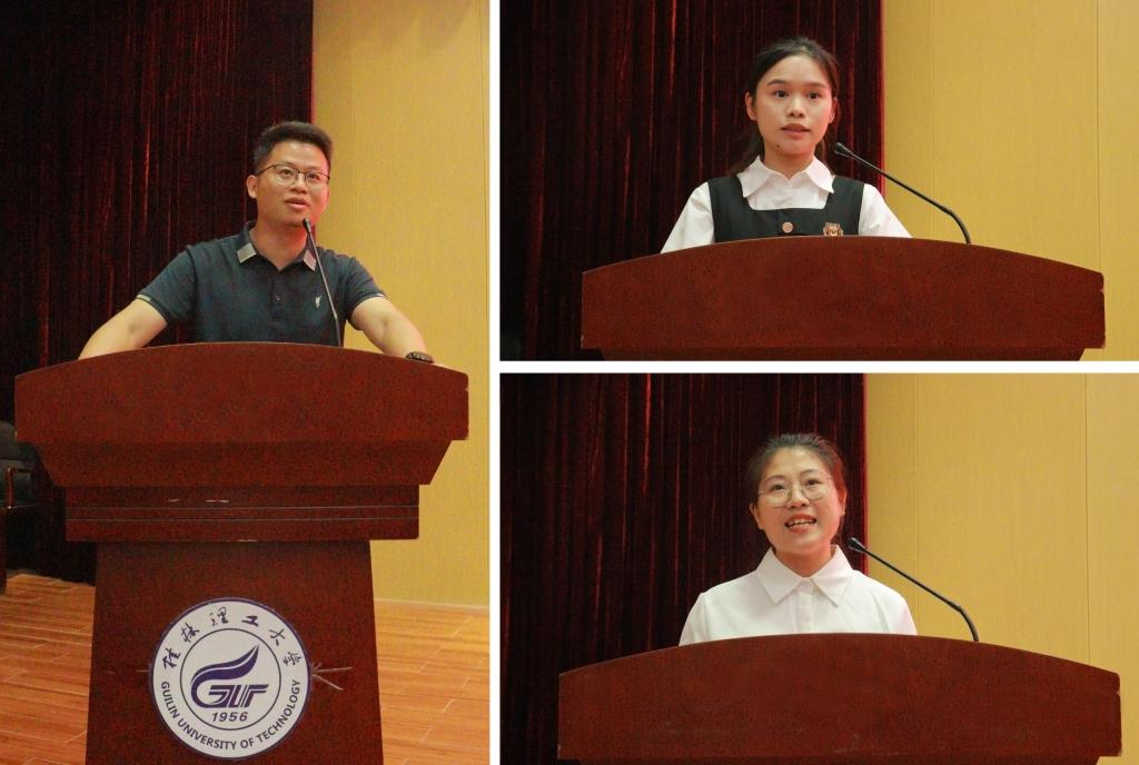 导师代表黄斌结合自己的求学经历,从快速转换角色、明确科研目标、做到学术诚信等方面进行了发言,勉励同学们尊重科学、尊重真理,在学术科研中实现理想。新生代表张焱焱表示将明确学习目标、珍惜宝贵时间、拓展学术视野,做一个诚实守信、兢兢业业的学者。老生代表宋远霞发言,勉励学弟学妹们要积极承担社会责任、积极从事学术研究、加强锻炼,做一粒向上奋斗的种子。