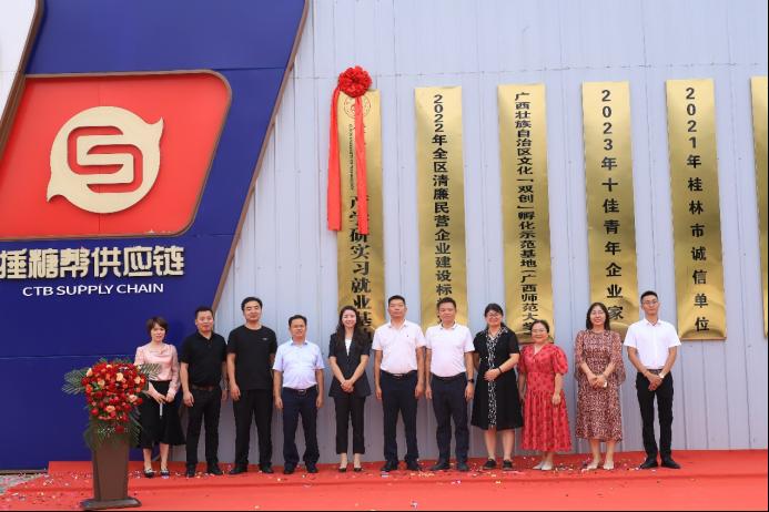 为更好地满足地方发展过程中对人才的需求,进一步提高人才培养质量和推进产学研深度融合,解决毕业生就业、实习问题,实现学校与地方资源共享和深度融合,2024年9月27日,SeedHub党委书记彭代江、副院长李霞等一行四人到桂林市捶糖帮供应链管理有限公司开展合作洽谈并举行产学研实习就业基地签约及挂牌仪式。桂林市捶糖帮供应链管理有限公司总经理张燕玲、桂林市科学技术情报研究所所长张树斌、情报研究所工业发展研究部副主任韦婉琰、阳朔县白沙镇党委书记黎中顺等领导一起参加签约及挂牌仪式。